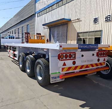 We offer low bed and flat bed trailers suitable for various transport needs.
